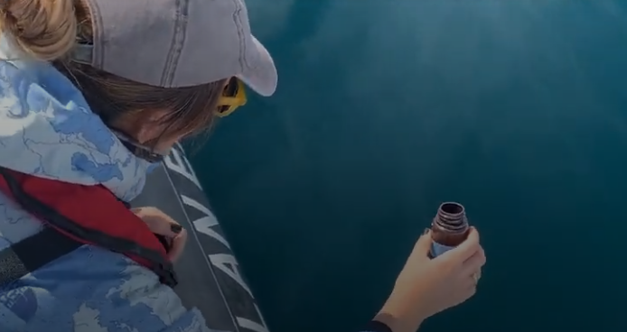 While onboard small boats (zodiacs), with the assistance of field guides, guests collect valuable oceanographic data. Field sampling includes identifying and counting seabirds around icebergs, net tows to collect phytoplankton, distance measurements to the nearest iceberg, surface meltwater samples, chlorophyll-a, salinity and temperature measurements obtained from a CTD, Secchi disk measurements (water clarity and euphotic zone depth), and ocean color information that corresponds to the biological samples collected.